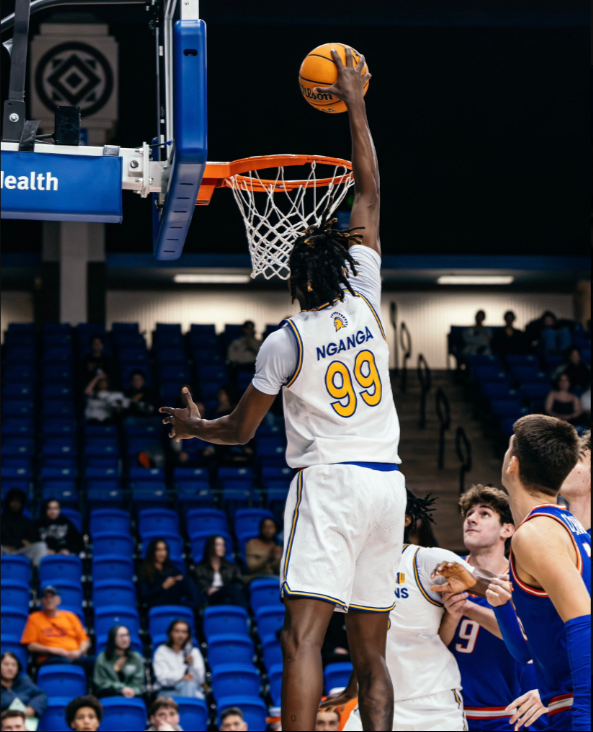 San Jose State’s Sadraque NgaNga dunks against Boise State in the Spartans 85-58 loss on Jan. 27. Photo courtesy of San Jose State Athletics.