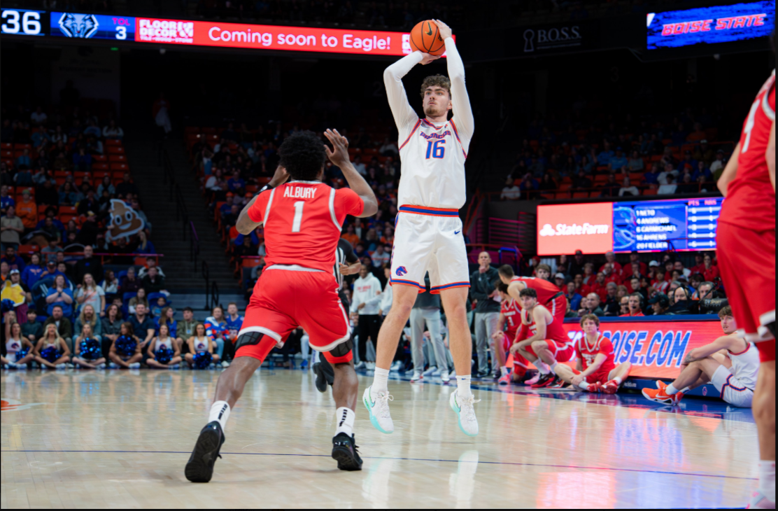 Boise State freshman forward Spencer Ahrens knocked down two second half 3-pointers against UNM on Dec. 30. Photo courtesy of BSU Athletics.